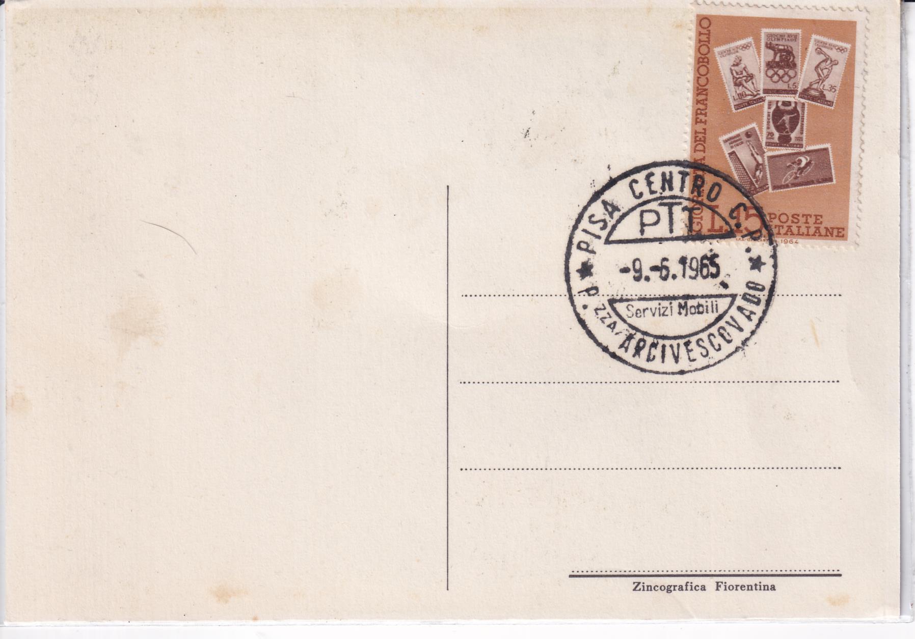 Cartolina Giornata del francobollo Anno 1964 Annullo Primo Giorno Pisa Filatelico