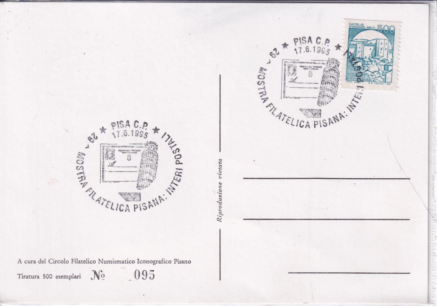 Cartolina 29esima Mostra Filatelica Interi Postali Pisa 95 23-5-1971 Annullo Speciale Primo Giorno di Emissione