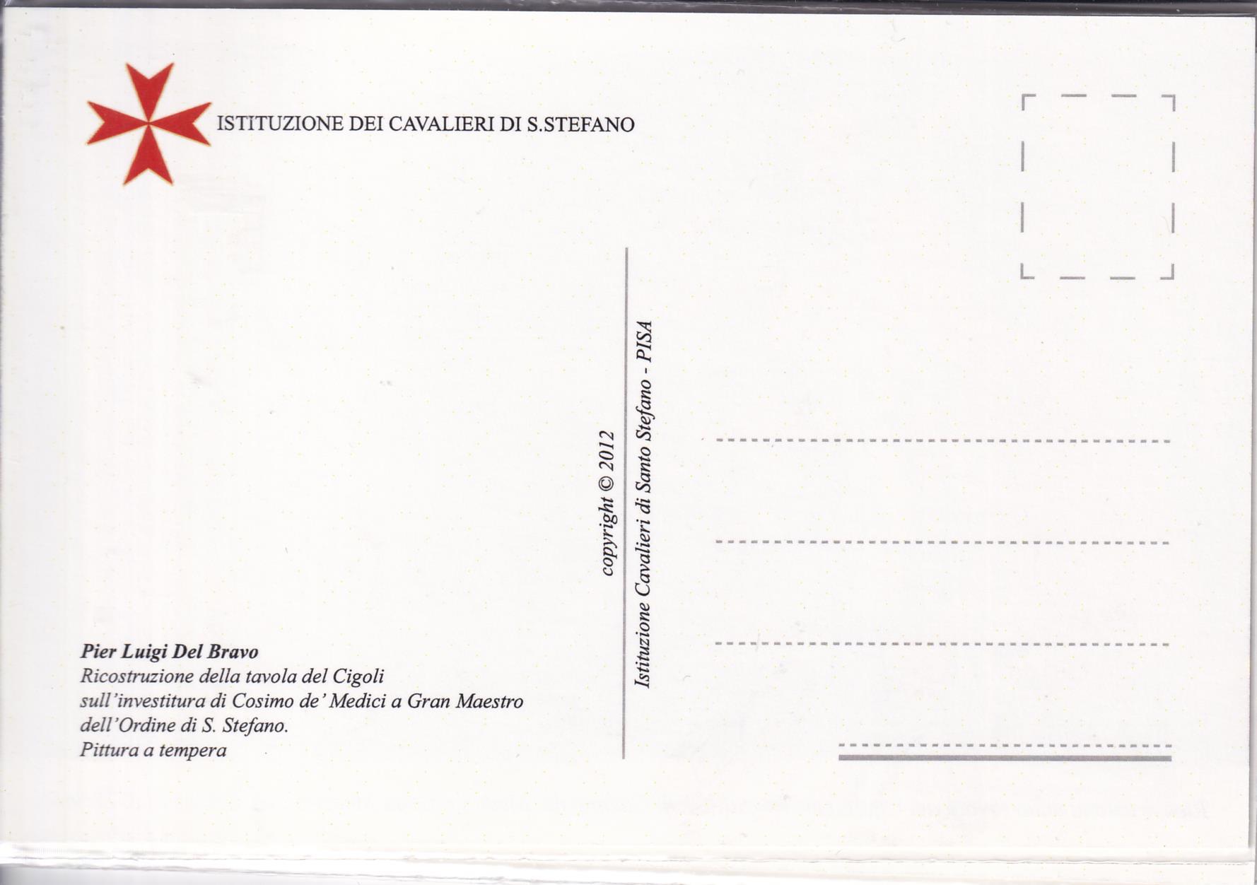 Cartolina Pisa Istituzione dei Cavalieri di Santo Stefano – Riproduzione di pittura a tempera opera di Pier luigi Del Bravo Anno 2012
