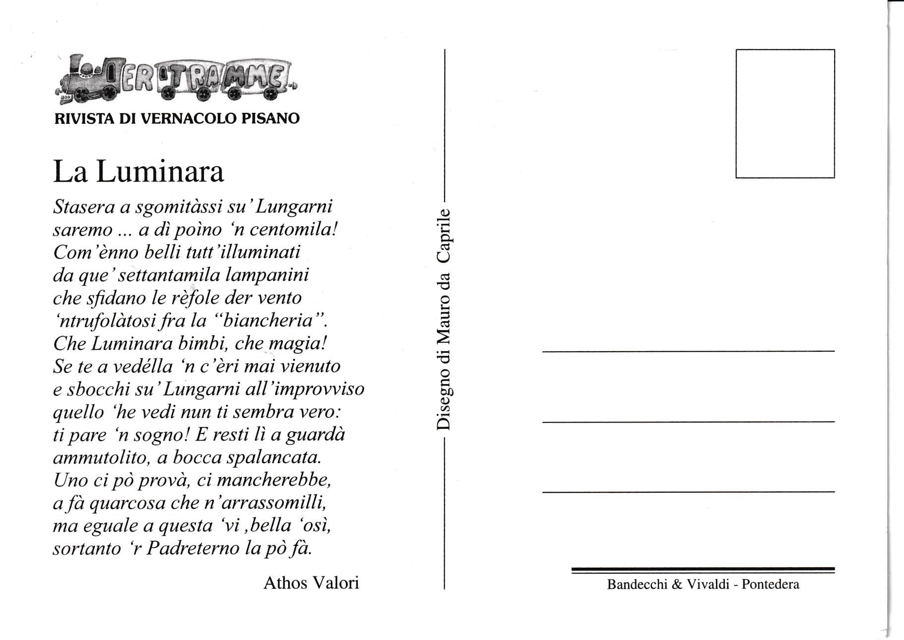 Cartolina Pisa Serie Er Tramme Giugno Pisano Storia Folclore Cultura – Disegno di Mauro Da Caprile – Con poesia di Athos Valori La Luminara