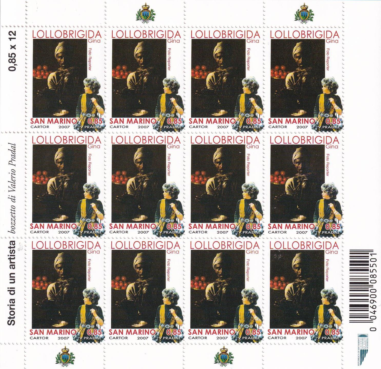 Minifogli San Marino Anno 2007 Storia di un’artista: Gina Lollobrigida (cat. n. 2129-2132)
