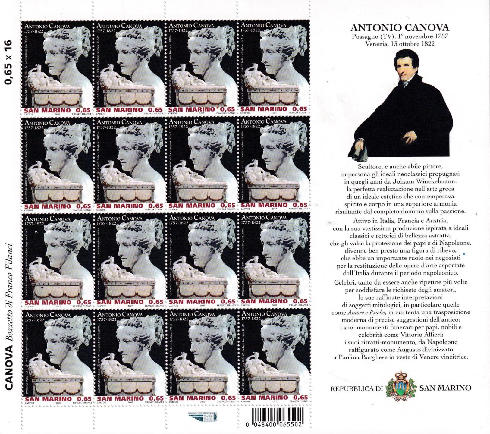 Minifoglio San Marino Anno 2007 ‘Glaray esperto di filatelia e storia postale sammarinese (cat. n. 2128)