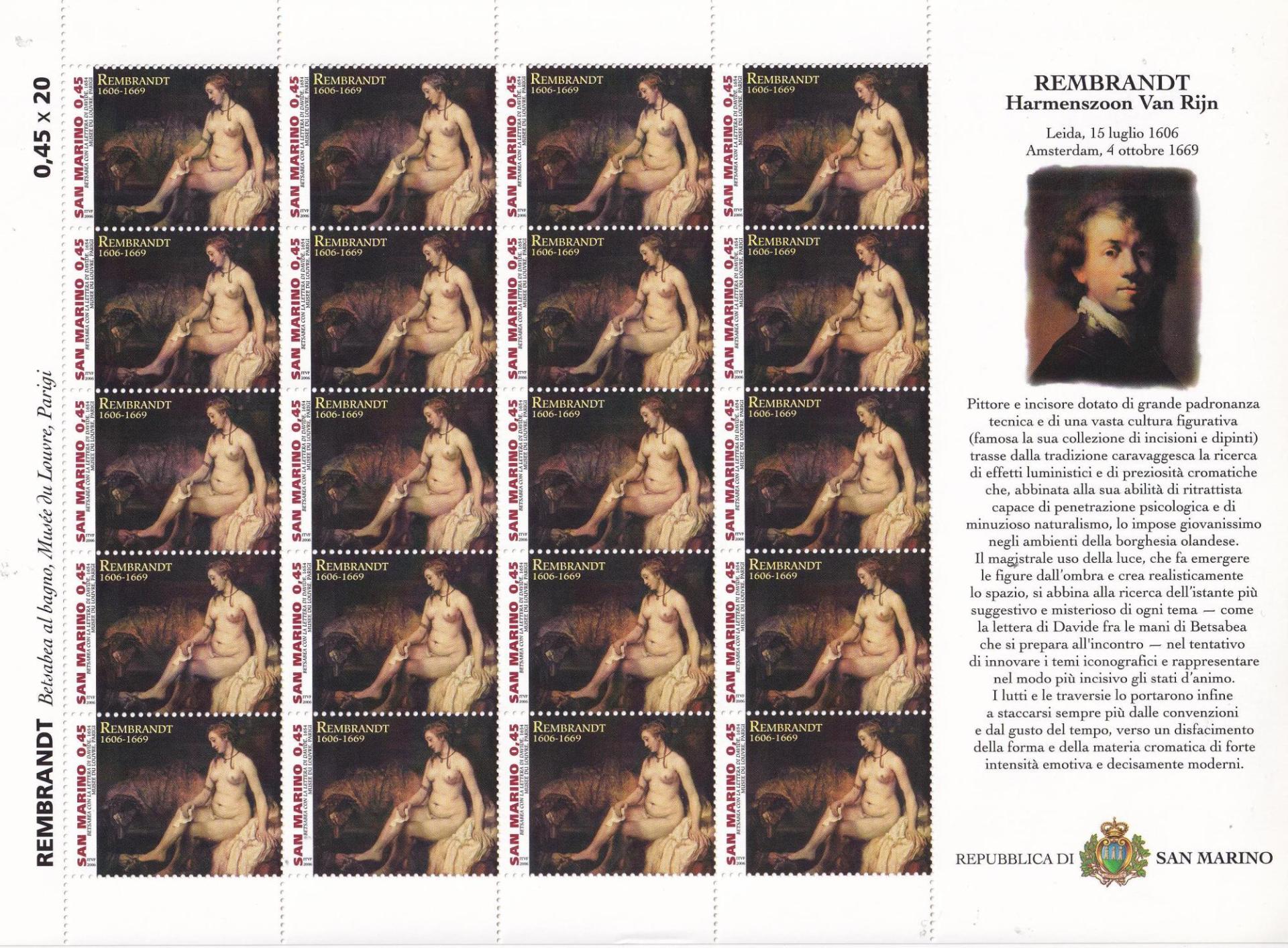 Minifogli San Marino Anno 2008 ‘Capolavori che ritornano’. Mostra pittorica presso il Palazzo Ruspoli di Roma (cat. n. 2169-2172)