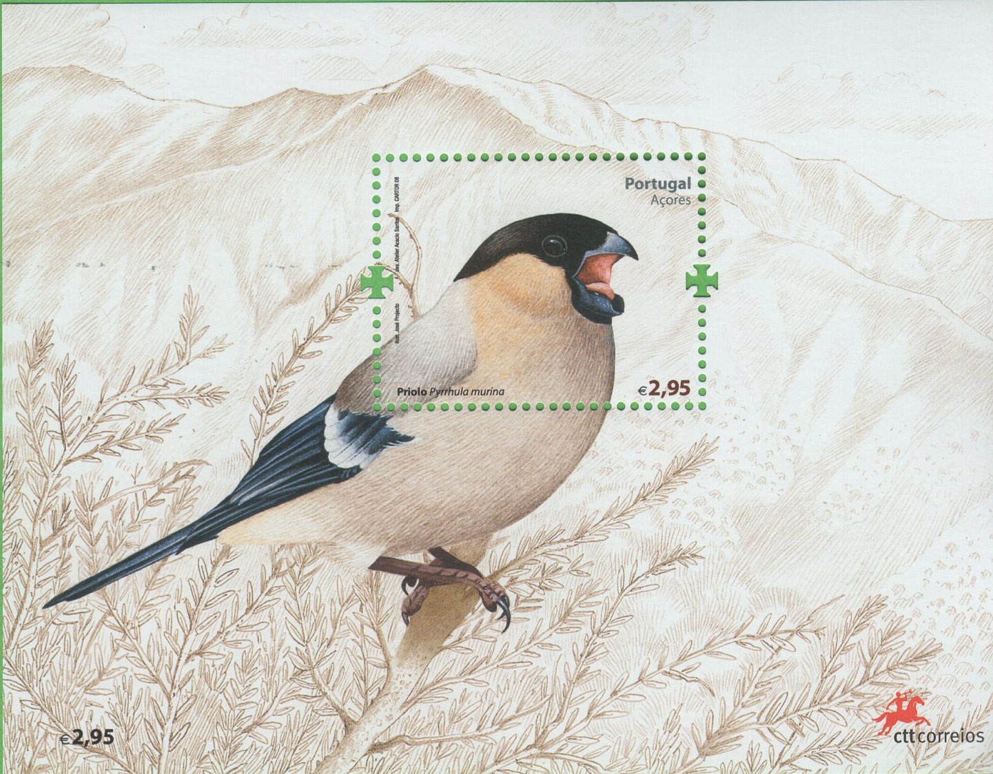 Foglietto Azzorre Anno 2008 Ciuffolotto delle Azzorre (BF 37-38)