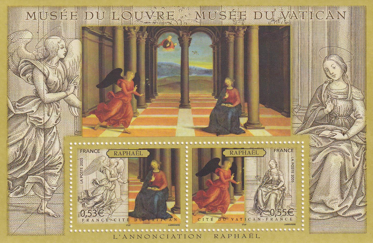 Foglietto Vaticano, Anno 2005, I grandi musei del mondo. I Musei Vaticani e il Louvre. Emissione congiunta con la Francia (BF n. 36) con il corrispondente Foglietto della Francia