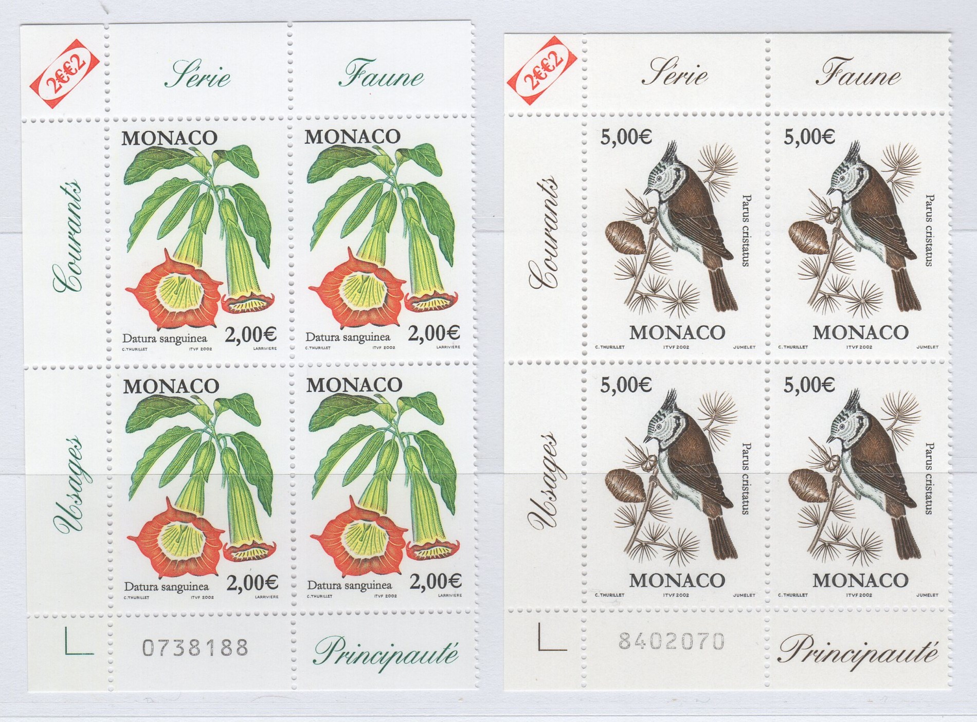 Francobolli Monaco Anno 2002 Natura Quartine d’angolo
