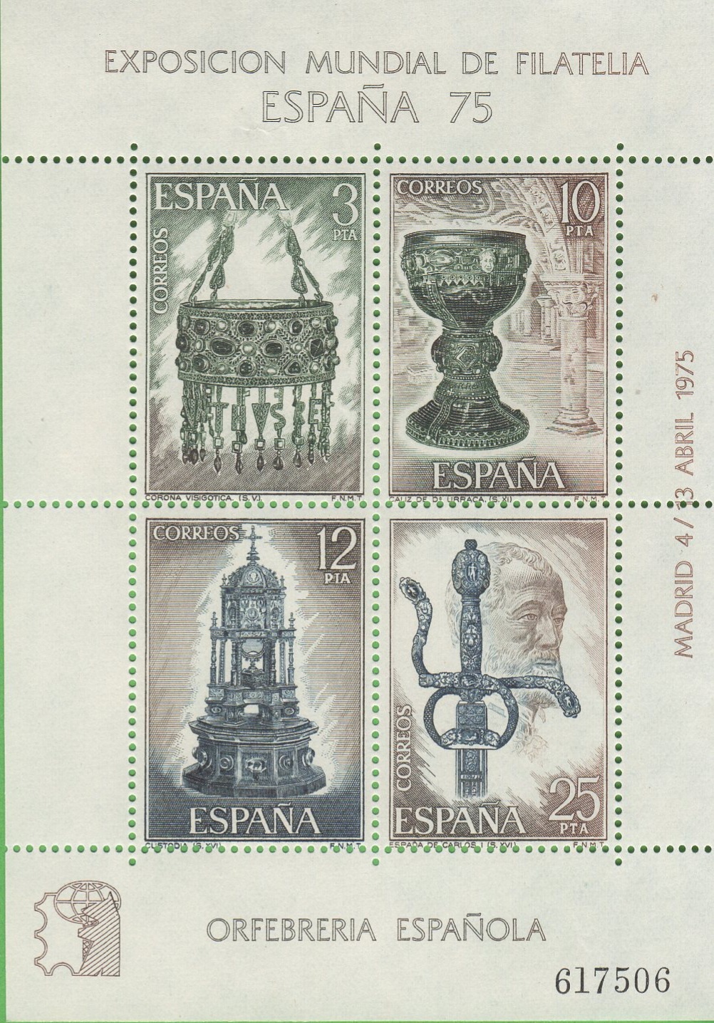 Foglietto Spagna Anno 1975 ESPANA 75 Esposizione mondiale di filatelia Opere di oreficeria spagnola (BF 25-26)