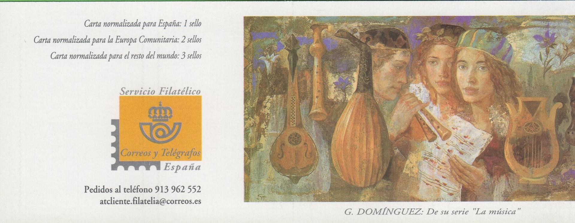 Libretto Spagna Anno 2002 La Musica Dettagli e opere del pittore Goyo Dominiquez Autoadesivi (Lb 3507)