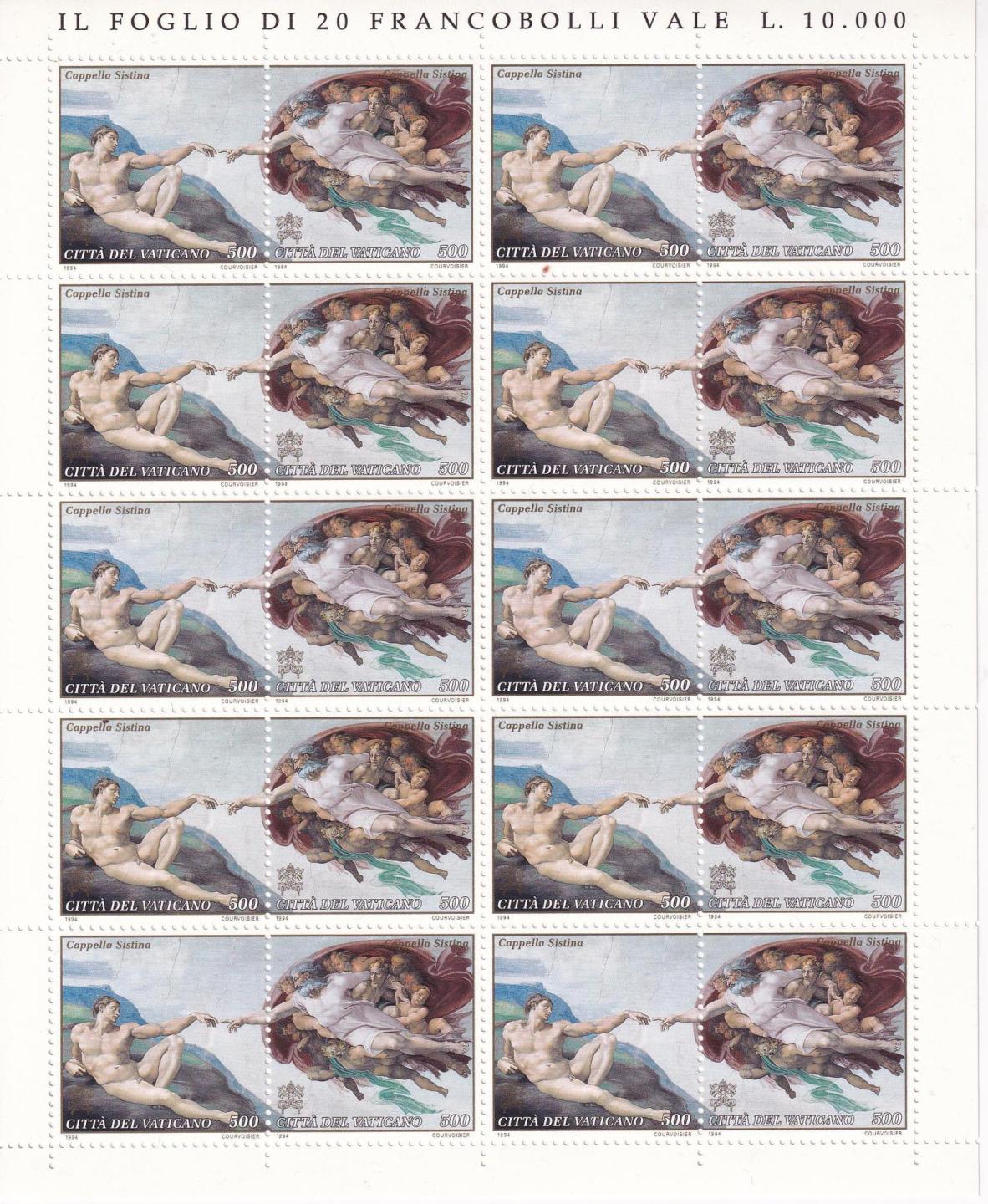 Minifogli Vaticano, Anno 1994, Serie completa Restauro della Cappella Sistina (MF n. 981-988)