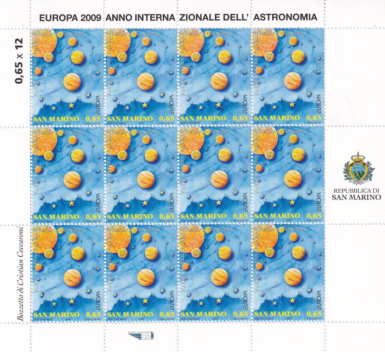 Minifogli San Marino Anno 2009 Europa. Anno Internazionale dell’Astronomia (cat. n. 2226-2227)