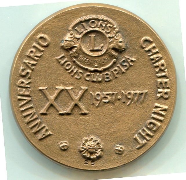 Medaglia commemorativa LIBERTY INTELLIGENCE OUR NATIONS SAFETY PISA – Lions Club Pisa XX Anniversario Charter Night 1957-1977