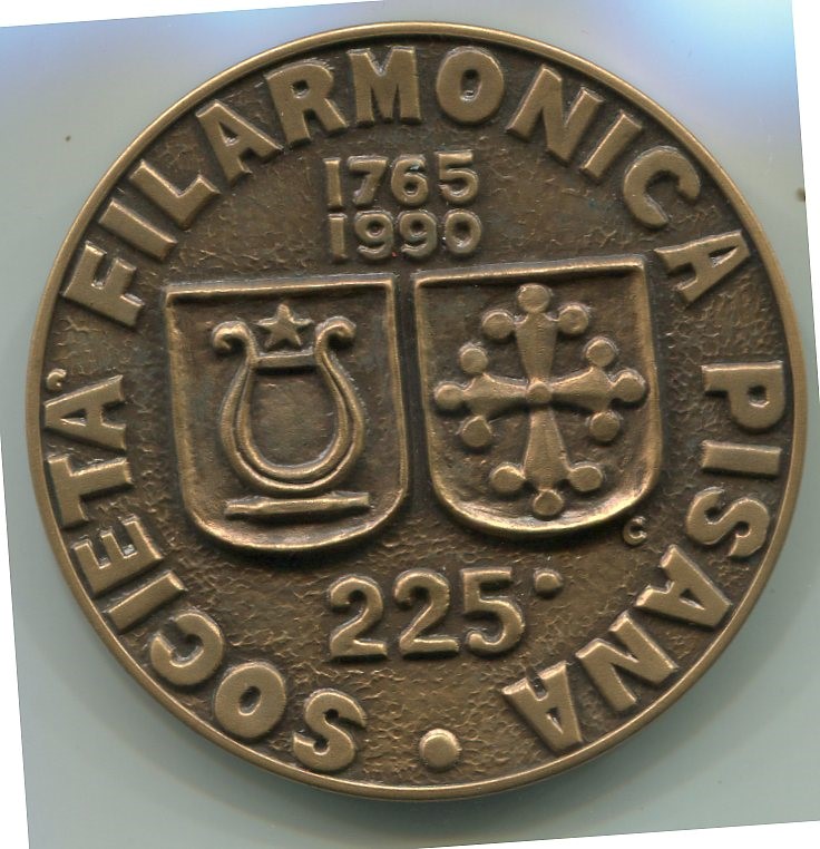 Medaglia commemorativa SERVIRE LA CITTA’ CON LA MUSICA 1765-1990 – 225° SOCIETA’ FILARMONICA PISANA