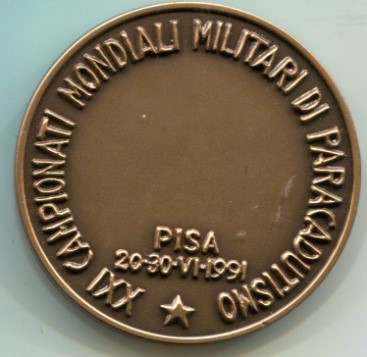 Medaglia commemorativa XXI Campionati mondiali militari di paracadutismo Pisa 20-30-VI-1991