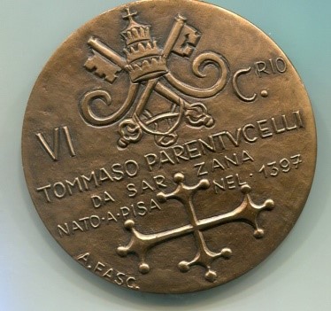 Medaglia commemorativa. NICOLO’ V. VI Centenario TOMMASO PARENTVCELLI DA SARZANA nato a Pisa nel 1397