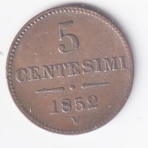 Moneta Impero Austriaco CENTESIMI 5 Venezia Anno 1852