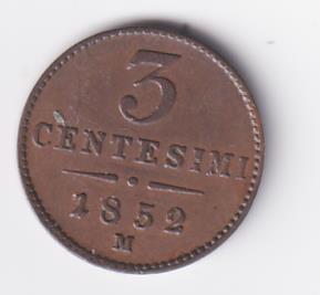 Moneta Impero Austriaco CENTESIMI 3 Milano Anno 1852 R