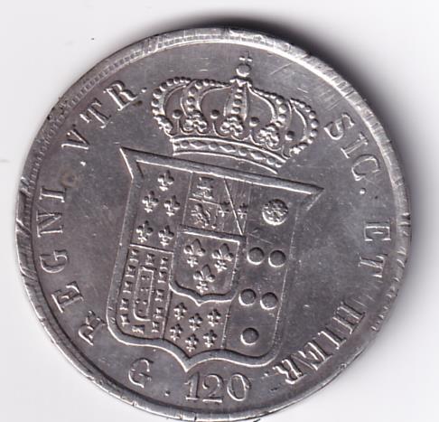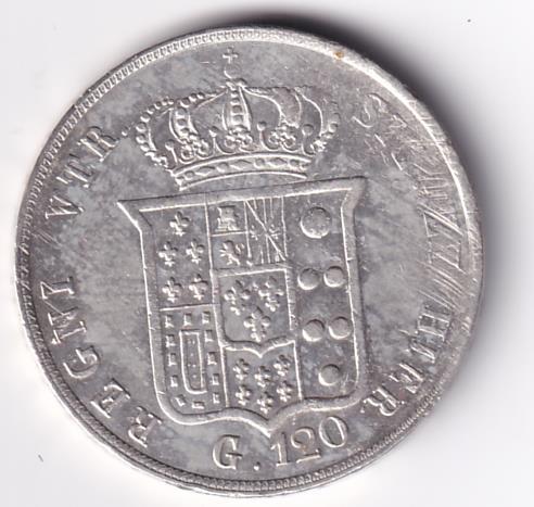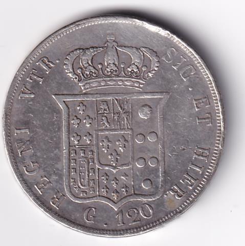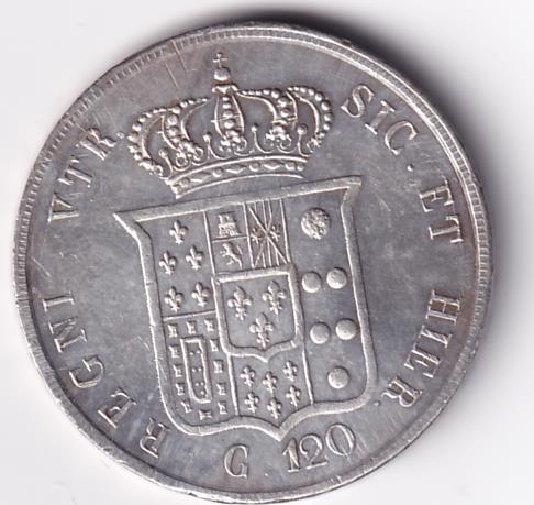 Moneta Regno di Napoli Anno 1855 GRANA 120 FERDINANDUS II DEI GRATIA REX 1854 REGNI UTR SIG. ET . HIER GR 120