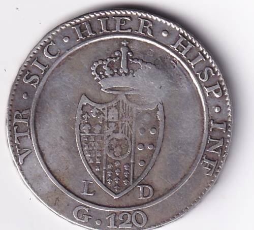 Moneta Regno di Napoli Anno 1805 GRANA 120 FERDINANDUS IV .D.G.REX 1805 UTR.HIER.HISP. L D G.120