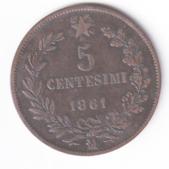 Moneta Regno d’Italia VITTORIO EMANUELE II RE D’ITALIA Anno 1861 Centesimi 5 – Milano
