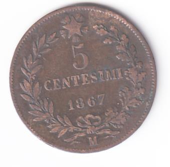 Moneta Regno d’Italia VITTORIO EMANUELE II RE D’ITALIA Anno 1867 Centesimi 5 – Milano