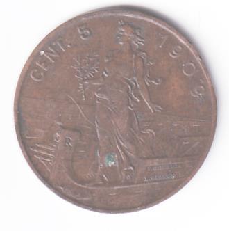 Moneta Regno d’Italia VITTORIO EMANUELE III RE D’ITALIA Anno 1909 Centesimi 5