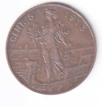 Moneta Regno d’Italia VITTORIO EMANUELE III RE D’ITALIA Anno 1913 Centesimi 5