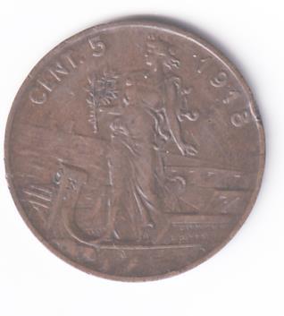 Moneta Regno d’Italia VITTORIO EMANUELE III RE D’ITALIA Anno 1918 Centesimi 5