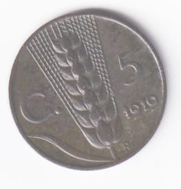 Moneta Regno d’Italia VITTORIO EMANUELE III RE D’ITALIA Anno 1919 Spiga Centesimi 5