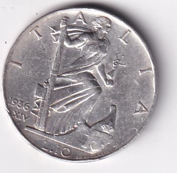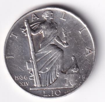 Moneta Regno d’Italia VITTORIO EMANUELE III RE E IMPERATORE – ITALIA 1936 XIV L.10