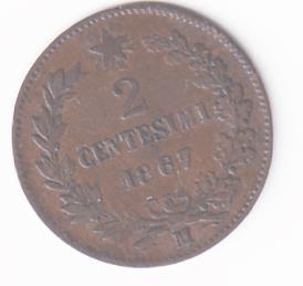 Moneta Regno d’Italia VITTORIO EMANUELE II RE D’ITALIA – 2 Centesimi 1867 Milano