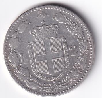 Moneta Italia Regno Umberto I Anno 1884 Roma Lire 2 STEMMA