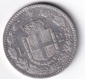 Moneta Italia Regno Umberto I Anno 1886 Roma Lire 2 STEMMA