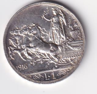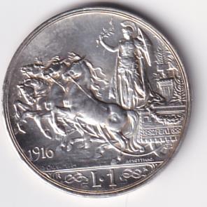 Moneta Italia Regno Vittorio Emanuele III Anno 1916 Lire 1 Quadriga briosa