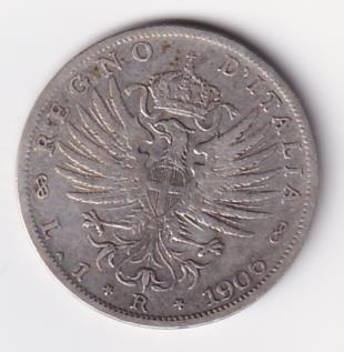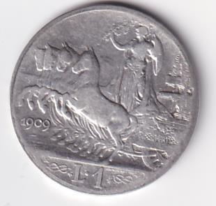 Moneta Italia Regno Vittorio Emanuele III Anno 1909 Lire 1 Quadriga veloce