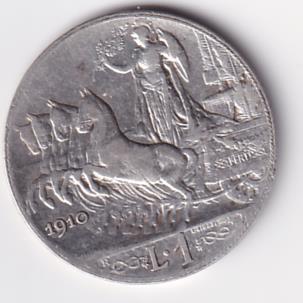 Moneta Italia Regno Vittorio Emanuele III Anno 1910 Lire 1 Quadriga veloce