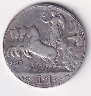 Moneta Italia Regno Vittorio Emanuele III Anno 1912 Lire 1 Quadriga veloce