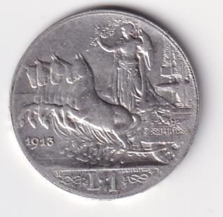 Moneta Italia Regno Vittorio Emanuele III Anno 1913 Lire 1 Quadriga veloce