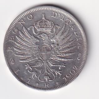 Moneta Italia Regno Vittorio Emanuele III Anno 1907 Lire 1 Aquila Sabauda