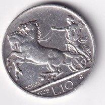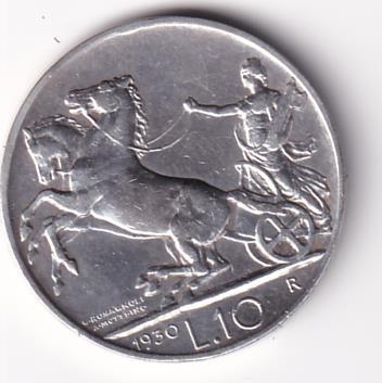 Moneta Regno d’Italia VITTORIO EMANUELE III RE E IMPERATORE – ITALIA 1936 XIV L.10