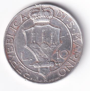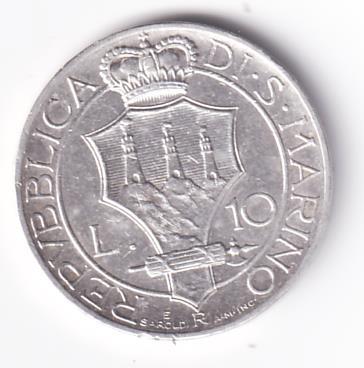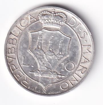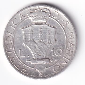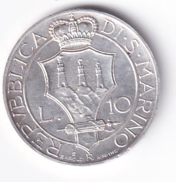 Moneta IUSTITIA. SUPREMA. LEX. ESTO 1936 – REPUBBLICA. DI. S. MARINO LIRE 10 R.