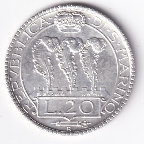 Moneta REPUBBLICA DI S. MARINO L. 20 – SALVAM. FAC. REMPUBLICAM. TUAM. 1931