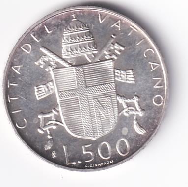 Moneta Stato Della Città del Vaticano Lire 500 PAVLVS VI PONT. MAX. AN. VIII