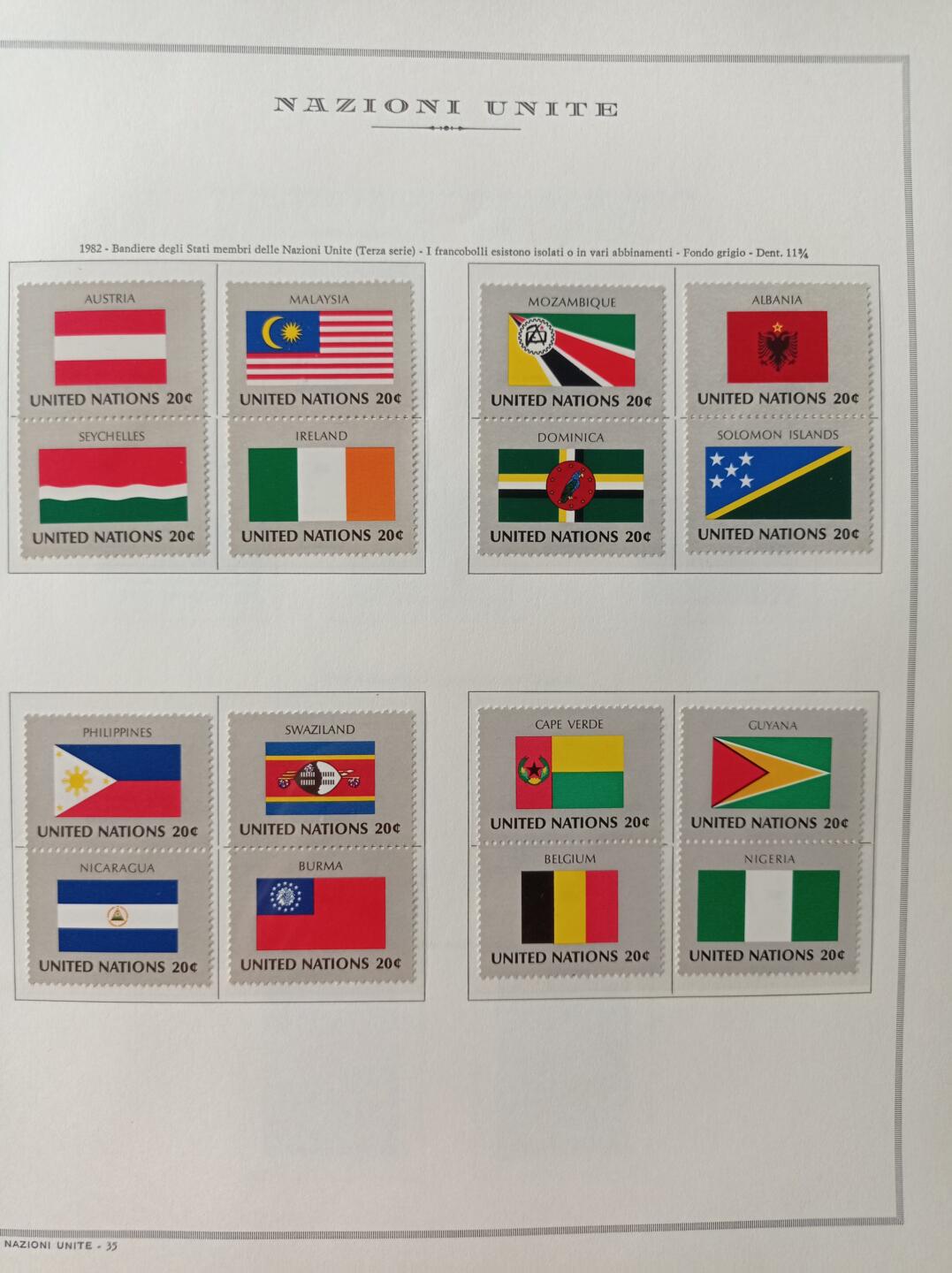 Francobolli Nazioni Unite – Ufficio di New York Anno 1982 Annata completa Montata su fogli Marini King usati (i fogli King sono in omaggio)