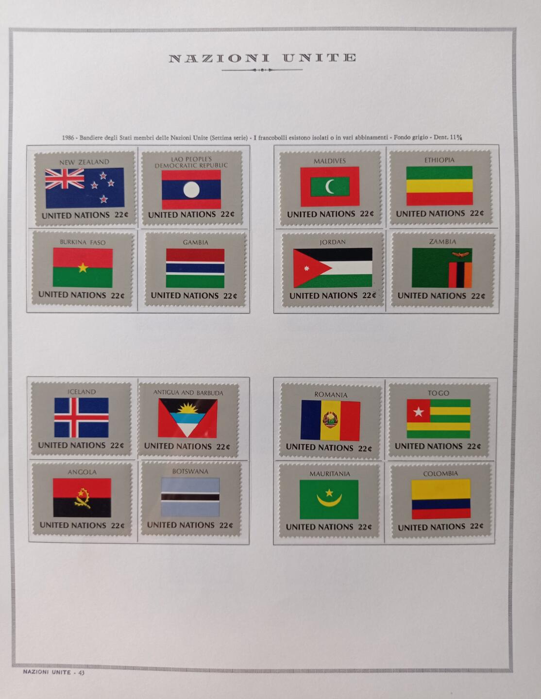 Francobolli Nazioni Unite – Ufficio di New York Anno 1986 Annata completa compreso foglietto Montata su fogli Marini King usati (i fogli King sono in omaggio)