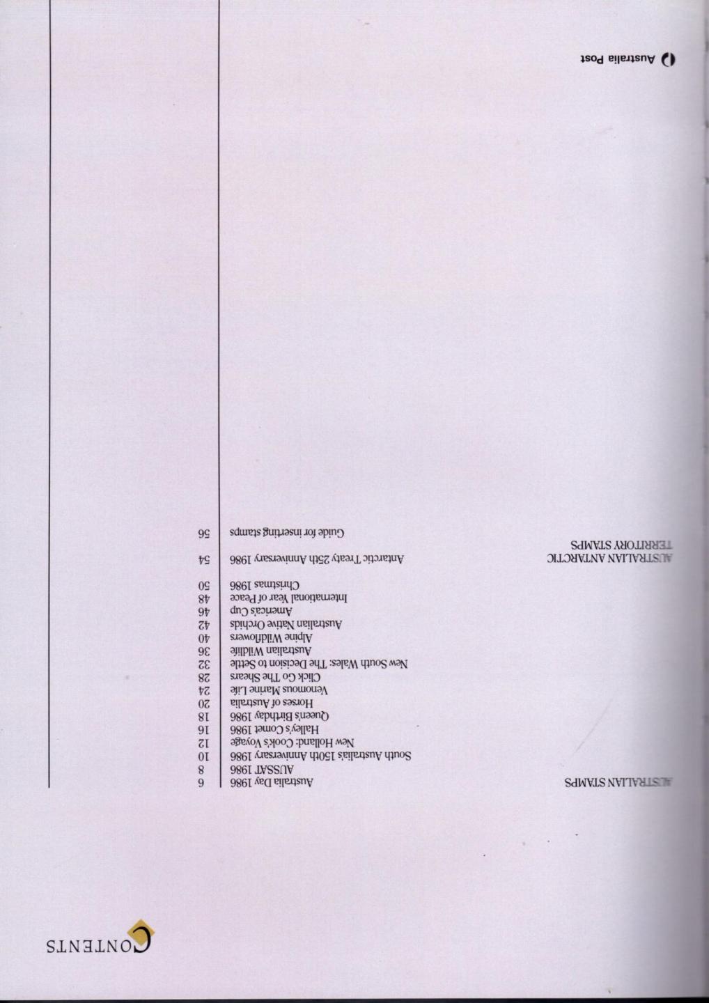 Folder di Poste Australiane con immagini e descrizione dei francobolli emessi nel 1986 The Collection of 1986 Australian Stamps