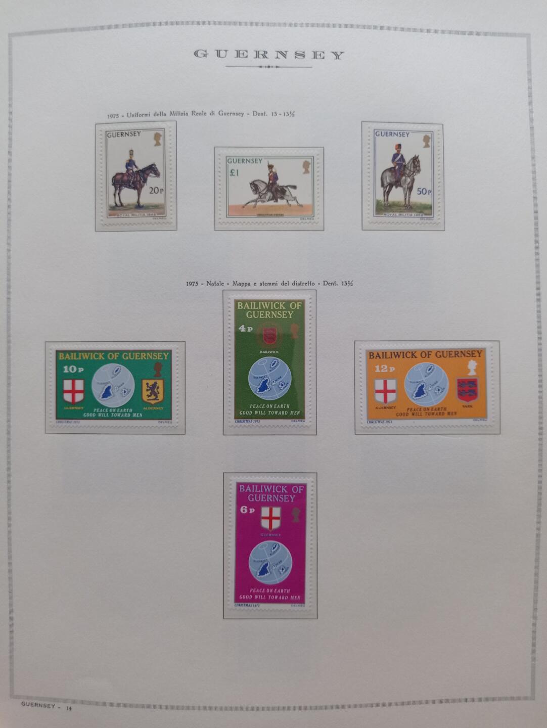 Francobolli Guernsey Anno 1975 Annata completa montata su Fogli Marini King usati (i fogli sono in omaggio)