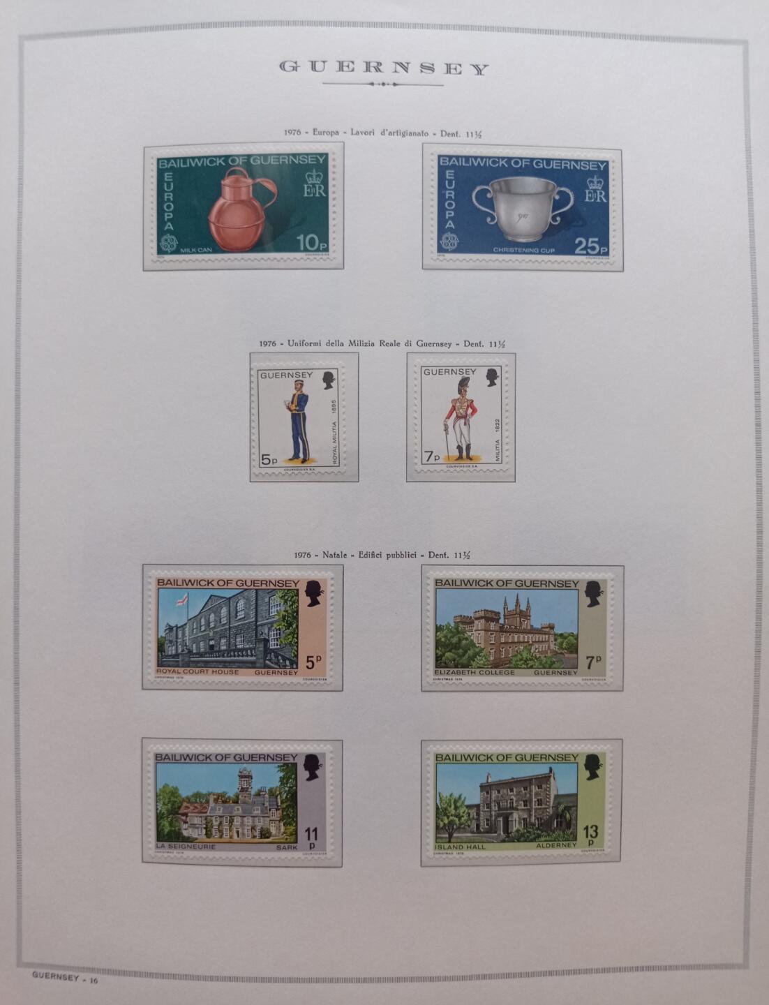 Francobolli Guernsey Anno 1976 Annata completa montata su Fogli Marini King usati (i fogli sono in omaggio)