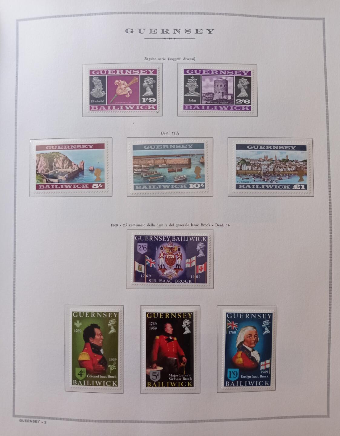 Francobolli Guernsey Anno 1970 Annata completa montata su Fogli Marini King usati (i fogli sono in omaggio)