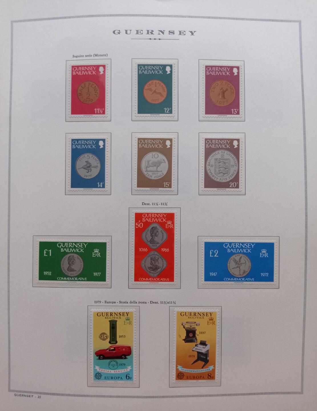 Francobolli Guernsey Anno 1979 Annata completa montata su Fogli Marini King usati (i fogli sono in omaggio)