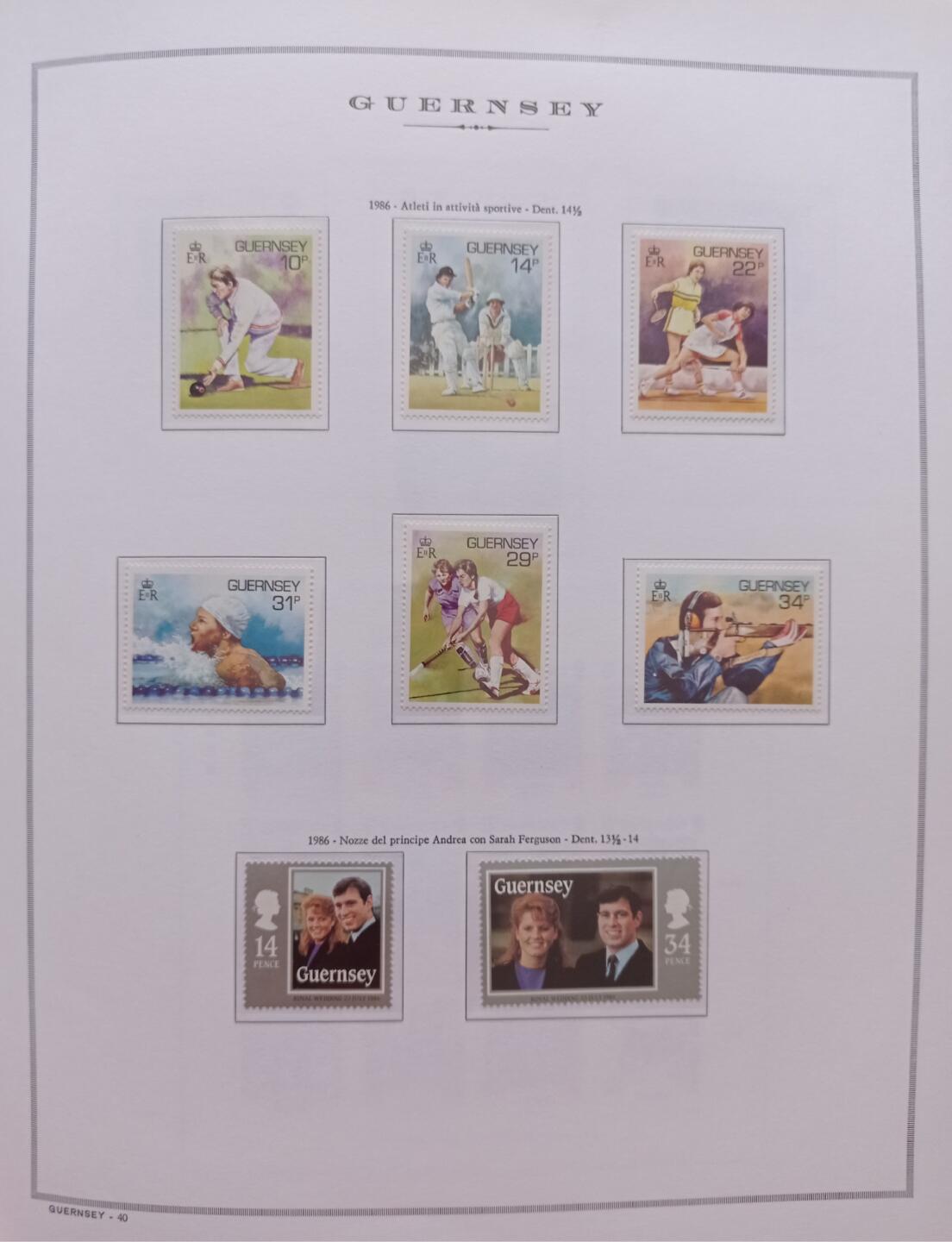 Francobolli Guernsey Anno 1986 Annata completa montata su Fogli Marini King usati (i fogli sono in omaggio)